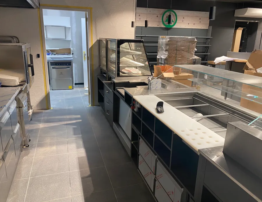 In het opvallend vormgegeven Esso-tankstation aan de Vijfhuizerweg in Hoofddorp realiseerde First Impression Projects de volledige turnkey afbouw van de Go Fresh bakery. Van vloeren, plafonds en E&W-installaties tot maatwerkinterieur, professionele bakkerijapparatuur, walk-in coolers én signing bestaande uit logo gefreesde letters en verlichte doosletters – alles werd door ons integraal ontworpen, gebouwd en opgeleverd.